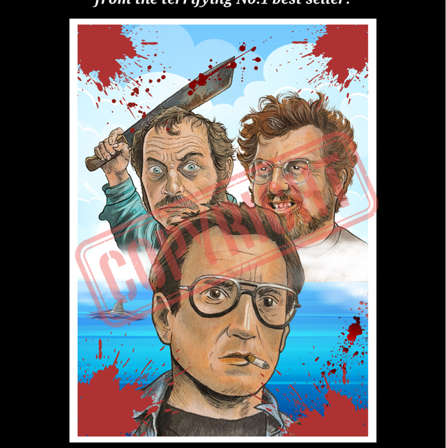 Introducing my Jaws-inspired movie poster — created using my original portrait artwork from the iconic film, combined with bold retro-style graphics to give it that authentic cinema vibe.